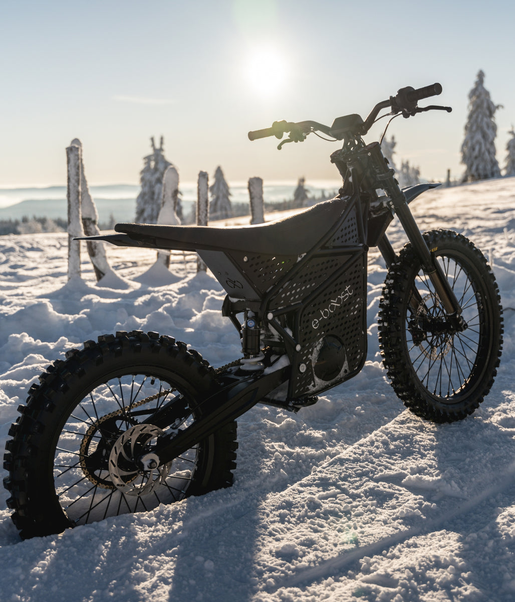 The e-boost Offroad takes adventure to a new level. Powerful, quiet and unstoppable, it masters any terrain. With a range of up to 100 km and a weight of just 70 kg, it combines the agility of an e-bike with the power of an e-motorcycle - for unlimited freedom off the road.